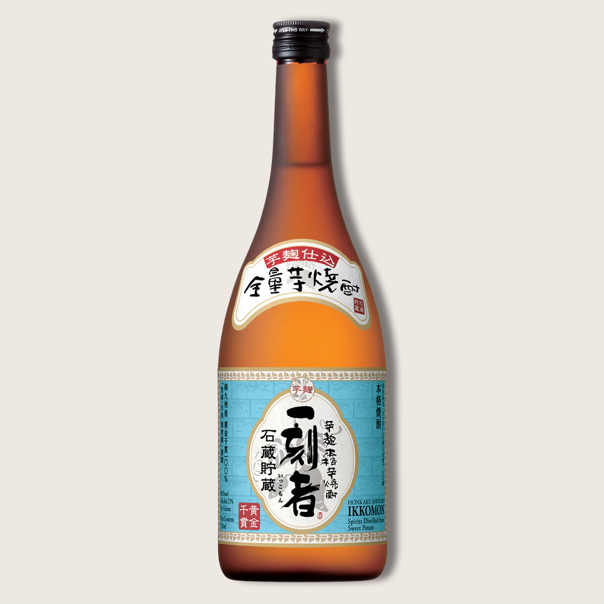 While many imo shochu are brewed with rice koji, Ikkomon is brewed with 100% imo from start to finish, then distilled once. Made with 100% Koganesengan sweet potatoes, the resulting product offers notes of toasted light rye, caraway, slated butter, fried apple and spices.