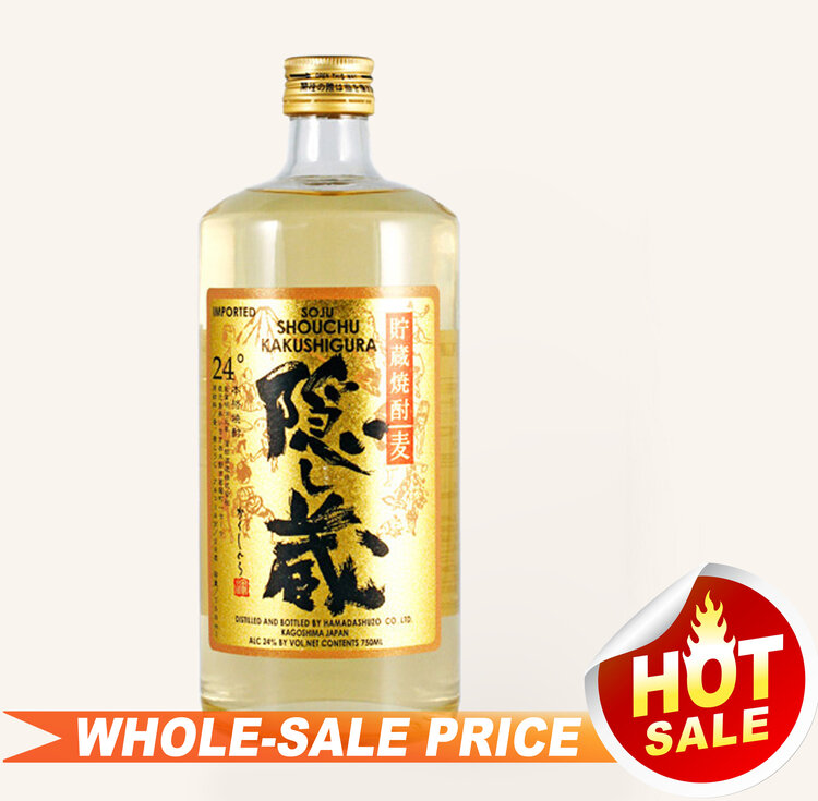 Kakushigura Mugi Shochu is a carefully cultivated and Oak Barrel aged Barley Shochu, with a nose of sweet vanilla and a rich flavor. Kakushigura is that selected Genshu (undiluted shochu) is aged with oak cask. It is yellow colored and has rich aroma.