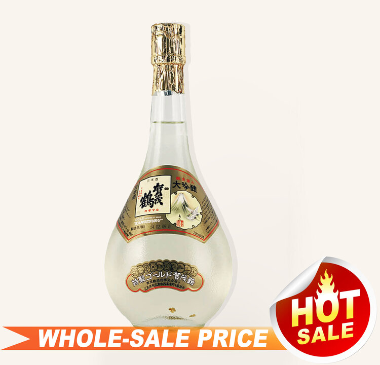 With its elegant aroma and a flavor profile that is dry yet mellow, the Daiginjo Tokusei Gold Kamotsuru has become a symbol of refined taste. Starting in the mid-1960s, it became a favorite at high-end restaurants, including the renowned Sukiyabashi Jiro in Ginza. The delicate gold leaves inside add a ceremonial elegance, making this sake a perfect choice for those seeking a luxurious experience.