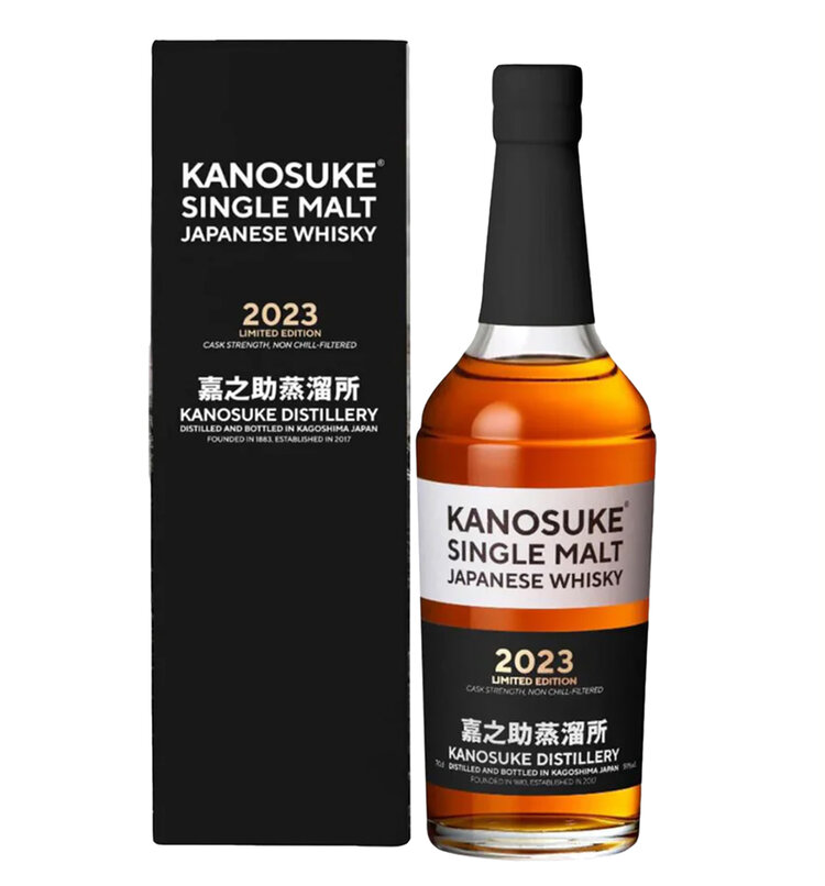 Kanosuke Distillery's 2023 vintage release marks a smoky evolution from its previous annual limited editions. This heavily peated single malt is a blend of peated and unpeated malts distilled in 2018 and 2019, aged for an average of 4 to 5 years in a mix of casks, including ex-bourbon barrels, sherry casks, and the distillery's unique Mellow Kozuru rice shochu American oak casks. Bottled at cask strength, this expression showcases Kanosuke's craftsmanship, with no added coloring and non-chill filtration.