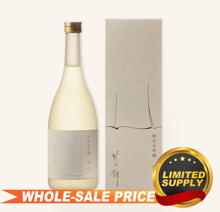 Kita no Nishiki Junmai Daiginjo Yukigokoro is the pinnacle of craftsmanship from Kobayashi Shuzo, a Hokkaido-based brewery with over 140 years of history. This sake is meticulously brewed using Hokkaido-grown rice varieties: "Ginpu" for the koji rice and "Suisei" for the kakemai. Both are polished to an impressive 35%, resulting in a refined and elegant flavor. The name "Yukigokoro," meaning "snow heart," reflects its delicate sweetness reminiscent of freshly fallen snow, embodying the dedication and spirit of the artisans behind its creation.