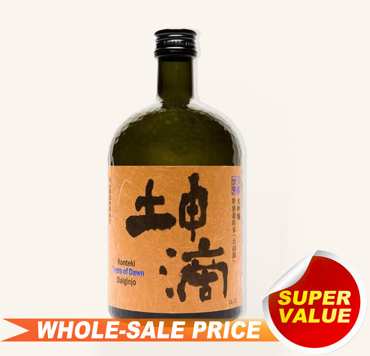 Konteki Tears of Dawn is a masterfully crafted daiginjo sake that combines tradition and elegance. Brewed using the same meticulous process as Konteki Pearls of Simplicity, this sake incorporates a touch of distilled alcohol to elevate its aromatics and refine its texture. The name Konteki translates to "dew drops of the earth," inspired by the glistening mountain dew at sunrise near the brewery in Higashiyama, or "eastern hill." This poetic imagery is beautifully mirrored in the sake’s exquisite flavor and balance.