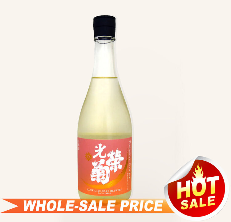 Koueigiku Tasogare Twilight Orange is a sake that beautifully harmonizes warm baking spice and zesty orange peel notes with a refreshing acidity that coats the palate. Its vibrant character is brought to life by a gentle effervescence, evoking the sweetness and tang of mandarin orange juice balanced with subtle hints of grapefruit bitterness on the finish. With its bright citrus aroma and the soft richness of umami gliding across the tongue, this unfiltered, unpasteurized genshu is a bold yet elegant expression of modern sake craftsmanship.