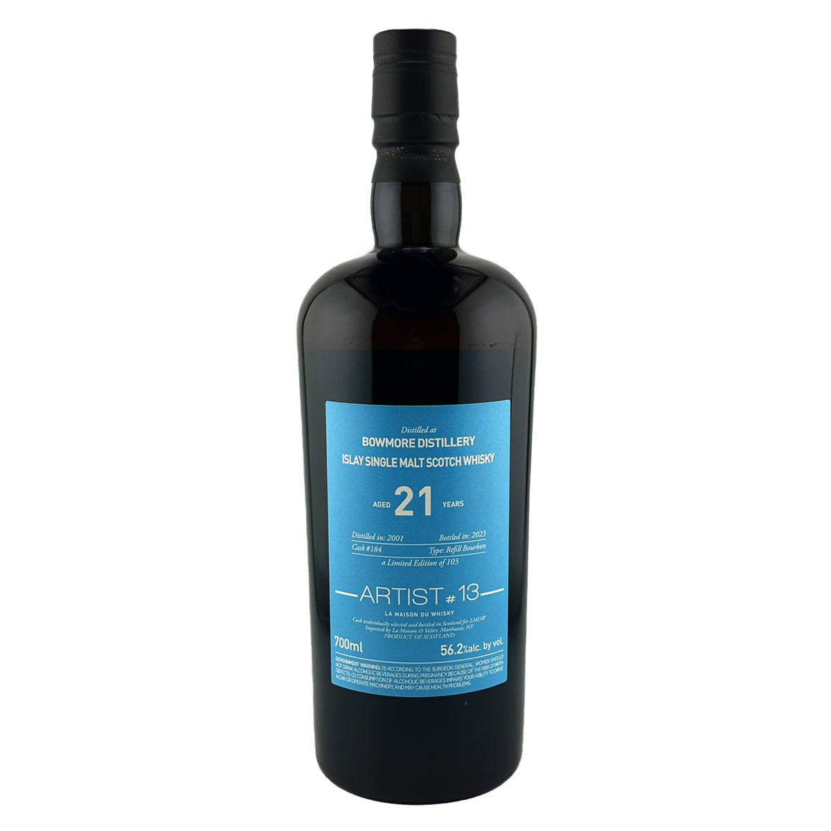 La Maison & Velier Artist Series presents the 'Bowmore 21 Year 2001' Single Malt Scotch Whisky, a masterpiece hailing from the esteemed Bowmore distillery in Scotland. This whisky offers a sensory journey like no other, boasting a rich and complex palate that captivates connoisseurs worldwide. Its aroma tantalizes with hints of peat smoke, citrus, and oak, setting the stage for a truly indulgent tasting experience.