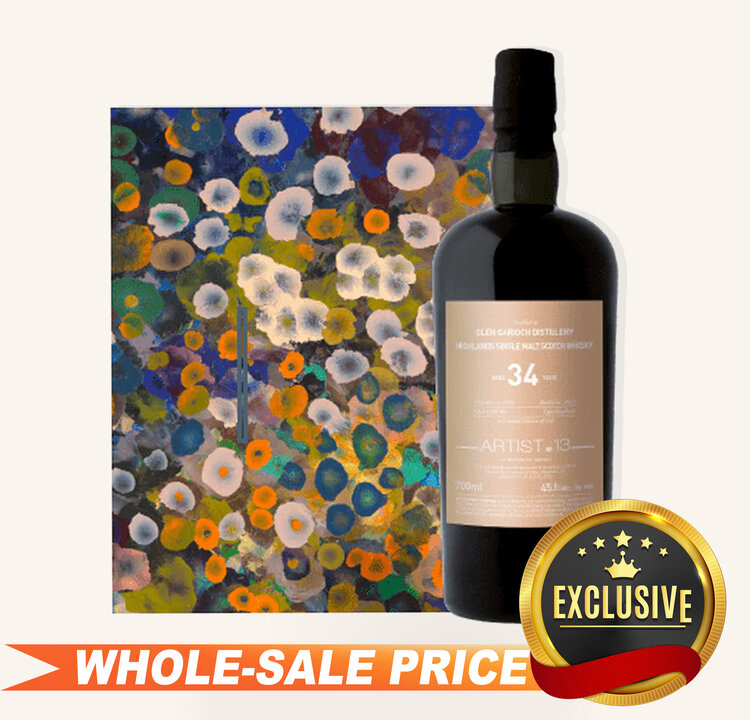 La Maison & Velier Artist Series proudly presents the 'Glen Garioch 34 Year 1988' Single Malt Scotch Whisky, a distinguished creation hailing from the scenic landscapes of Scotland. This exceptional whisky offers a journey through time, with each sip reflecting the rich heritage and craftsmanship of its origin.