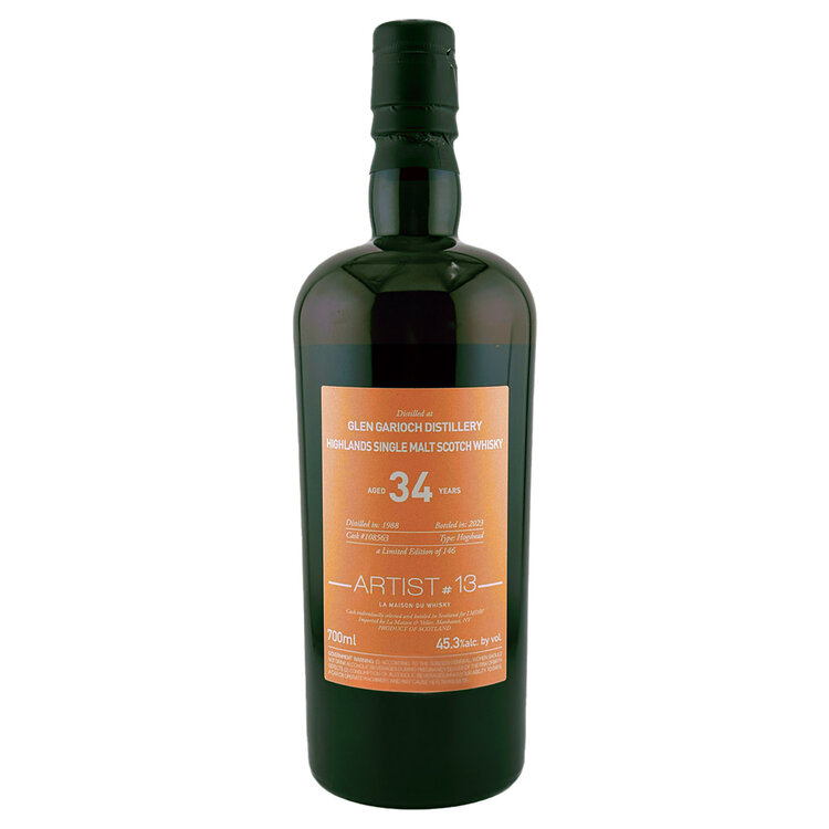 Crafted with precision and care, this whisky is a testament to the finest ingredients and the artistry of master distillers. With an alcohol content of 45.8% that commands attention, it is best enjoyed neat or with a splash of water to unlock its full potential. Indulge in the timeless elegance of La Maison & Velier Artist Series 'Glen Garioch 34 Year 1988' Single Malt Scotch Whisky and savor a moment of true refinement.