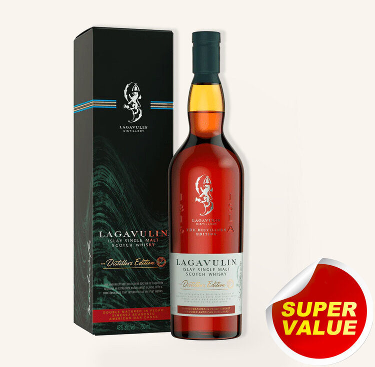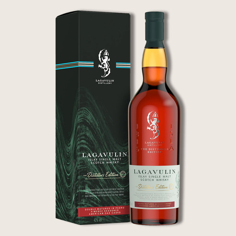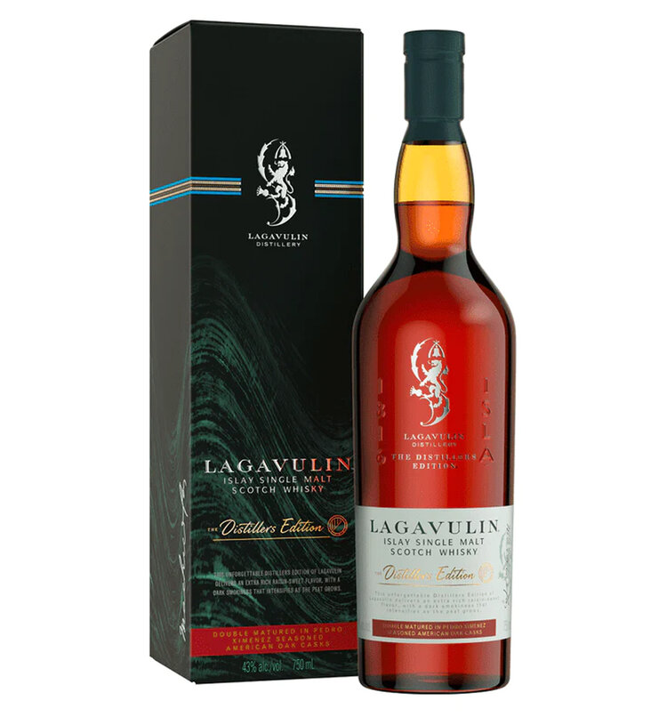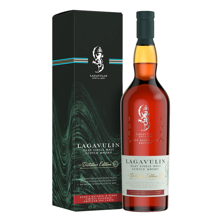 The smoky, peated Lagavulin is seen as the ultimate expression of the Islay region. Lagavulin Distiller’s Edition is double-matured in Pedro Ximénez cask wood, a wine derived from intensely flavoured sun-dried grapes, expertly selected for its raisiny sweetness to magically accentuate and deepen every aspect of the intense, rich character of Lagavulin. A very enjoyable malt, Lagavulin Distiller’s Edition makes a perfect gift for lovers of Lagavulin and peaty and powerful whiskies