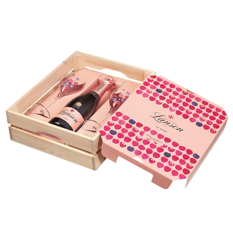 Founded in 1760 in Reims, Lanson is one of the oldest houses in France’s sparkling heritage, celebrated for its fresh and elegant style. Featured in this special “Fruit Market” gift set, reflects over sixty years of mastery in crafting delicate expressions—embodied in its pale pink hue and signature liveliness. Aged for four years, it captures refinement and balance, while the vibrant gift packaging—designed to evoke the joy of a bustling summer fruit market—adds a playful, colorful touch. Presented with two elegant glasses, this set makes a thoughtful way to celebrate shared moments.