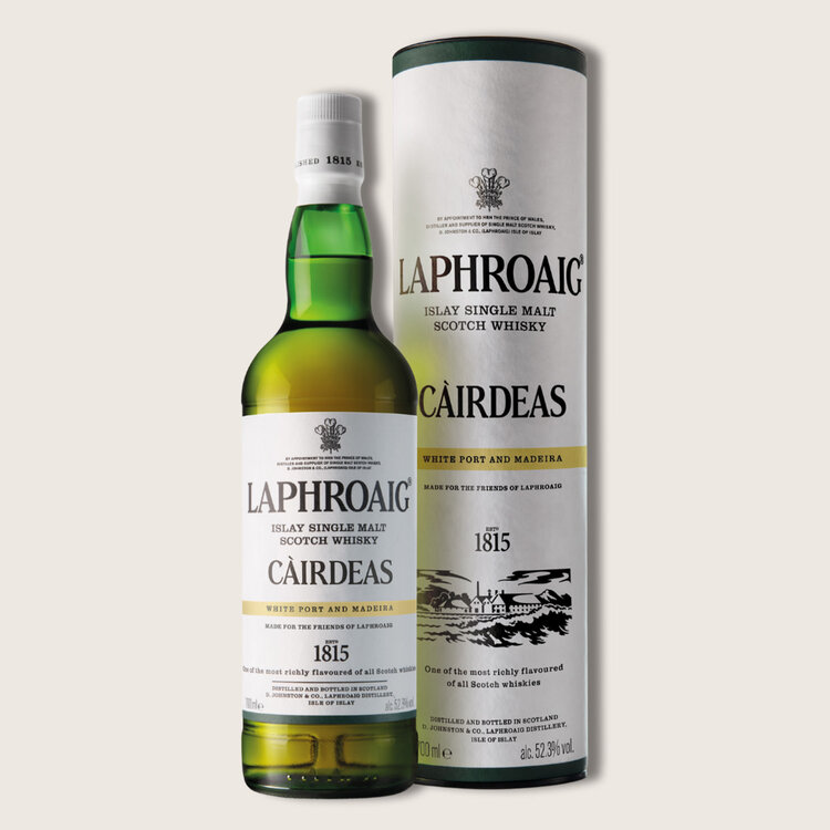 Laphroaig Cairdeas 2023 White Port & Madeira Casks Islay Single Malt Scotch brings together the best of much loved Cairdeas releases over recent years. The limited-edition single malt is a combination of Madeira and White Port casks. Three quarters of the whisky is matured in second-fill Madeira casks, releasing smoky, spicy, and sweet fruit flavors. The final quarter has been finished in first-fill Port casks; the majority of these are white port, adding a hint of crisp fruit and deep woodiness to the flavor. It's a new take on Laphroaig that plays to our strengths - welcoming friends old and new.