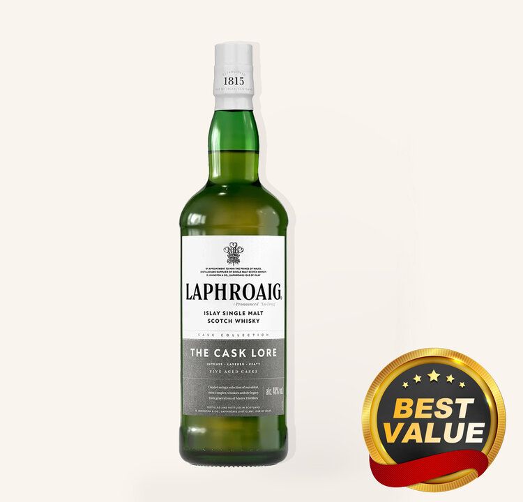 Laphroaig Single Malt Scotch – “The Cask Lore” is born from the heart of the iconic Islay distillery, a legendary estate founded in 1815 and proudly owned by Suntory Global Spirits. This expression is crafted in tribute to Laphroaig’s heritage—the rich storytelling of generations of distillers and blenders. It draws from their rarest stocks, blending single malts aged between 7 and 21 years, mature in a variety of casks: ex‑bourbon barrels, European oak, Oloroso sherry butts, and spiritedly intense quarter‑casks. The result is “Lore”—a whisky that embodies the traditions, craftsmanship and Atlantic spirit of Islay itself, respectfully handed down from one generation to the next in every drop.
