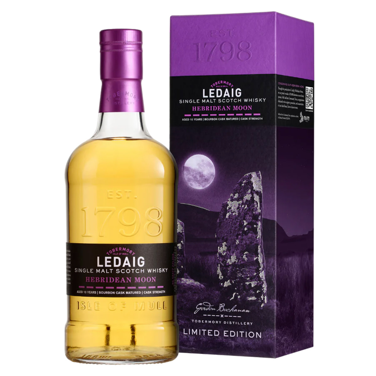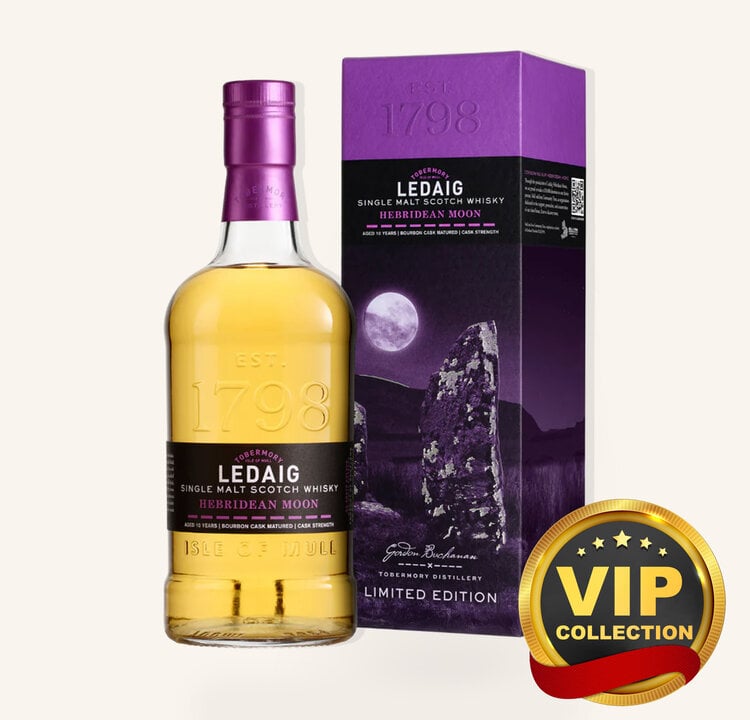 Inspired by Mull’s ancient Baliscate Stones—long regarded as symbols of renewal—Ledaig Hebridean Moon marks a bold new chapter for this iconic island house. Crafted using the brand’s newest stills beneath the wild Hebridean skies, this limited-edition 10-year-old release captures the untamed coastal character for which Ledaig is celebrated. Bottled at natural cask strength, it delivers an intensified and uncompromising profile that reflects both heritage and rebirth. This is Ledaig reimagined—powerful, elemental, and deeply expressive of its rugged island origins.