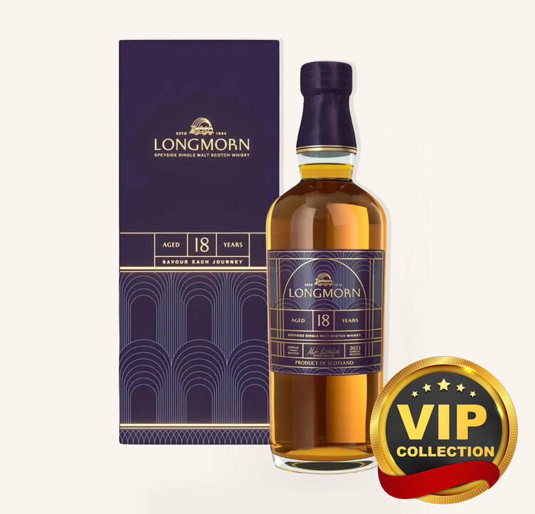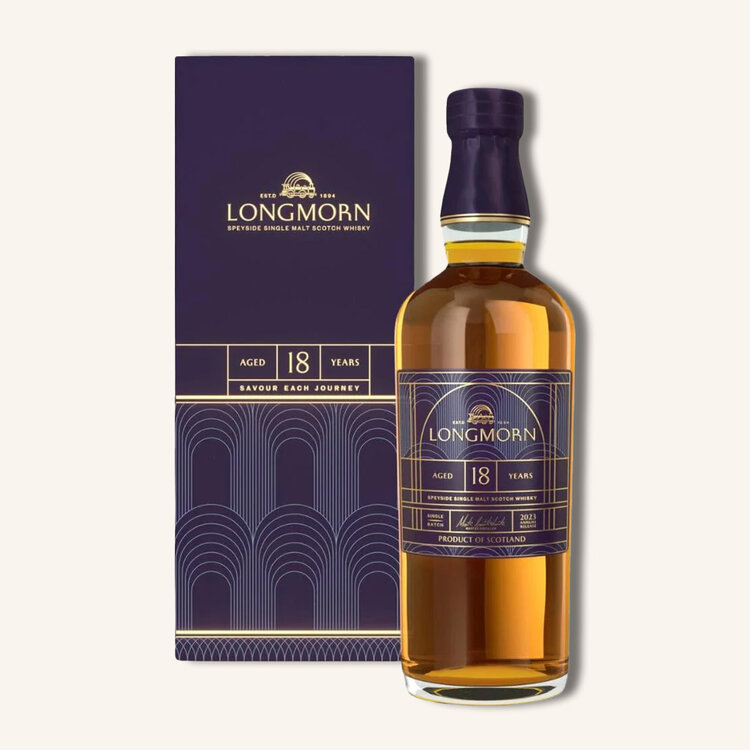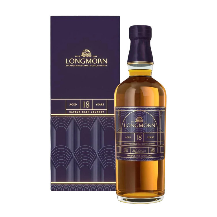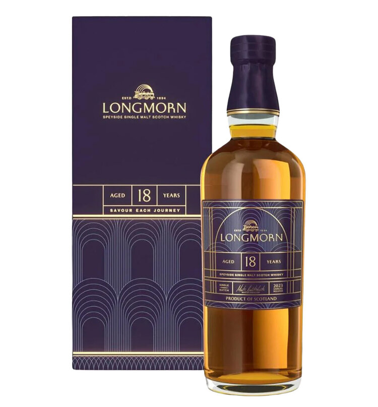 The Longmorn 18 Year Old Single Malt Scotch Whisky is a luxurious and masterfully crafted expression, aged to perfection in a combination of American oak barrels and hogsheads. Bottled at an impressive 57.6% ABV cask strength, this whisky delivers a bold and authentic tasting experience, showcasing the distillery's dedication to exceptional quality. On the nose, the influence of American oak shines through with enticing aromas of vanilla, coconut, and ripe orchard fruits like apple and pear, complemented by subtle notes of caramel and sweet spices. The palate is full-bodied and robust, offering layers of vanilla sweetness, toasted oak, and complex fruitiness, with the hogsheads adding hints of chocolate, nuts, and warming spices for added depth.