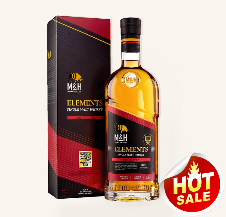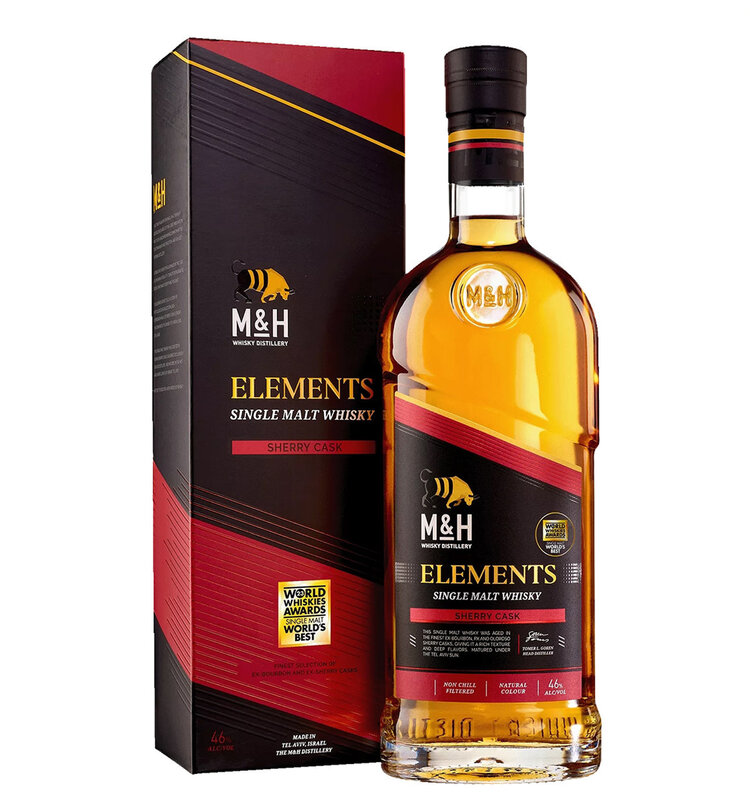 M&H Distillery, Israel's pioneering whisky producer, was established in 2013 in Tel Aviv with a commitment to crafting premium spirits that honor traditional whisky-making while embracing innovation. Their Elements Sherry Cask Single Malt Whisky exemplifies this philosophy, being the first single malt matured in kosher sherry casks. These casks were specially seasoned for M&H in Jerez, Spain, with Oloroso and Pedro Ximénez sherry, ensuring a unique and authentic maturation process. A modern classic and the ‘Best Single Malt in the World’ at the 2023 World Whisky Awards.