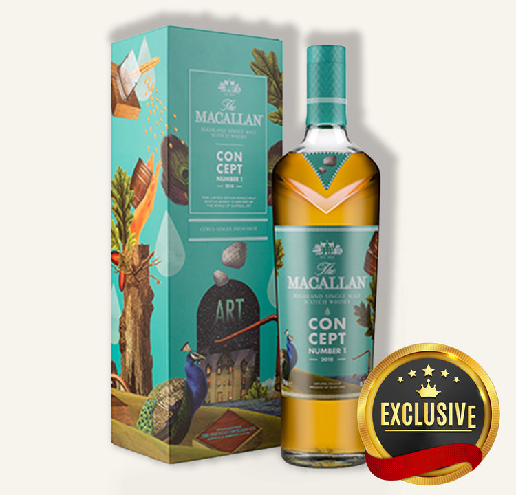 The first instalment in Macallan's revered 'Concepts' series, a new silo designed to celebrate visionaries who have disrupted the whisky making process, Concept Number 1 (released 2018) is inspired by surrealism and uses innovative techniques to produce a refined and unique single-malt scotch whisky. Featuring an iconic, artistic bottle label, and using whisky matured in sherry-seasoned oak and then ex-bourbon casks, the Concept Number 1 Single Malt Scotch Whiskey from Macallan is an imaginative and fantastic offering from the Highlands distiller, defined by its strong fresh flavor profile which spans from sweet butterscotch and subtle baking spice, to notes of citrus, complex ginger and fresh fruit through the palate and finish.