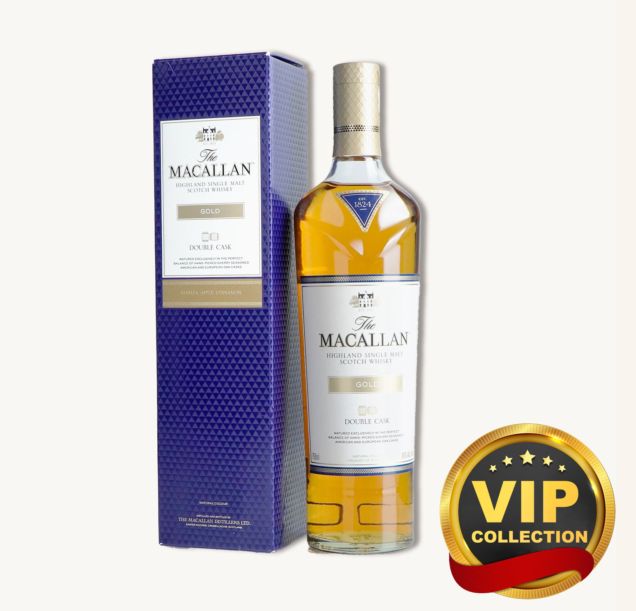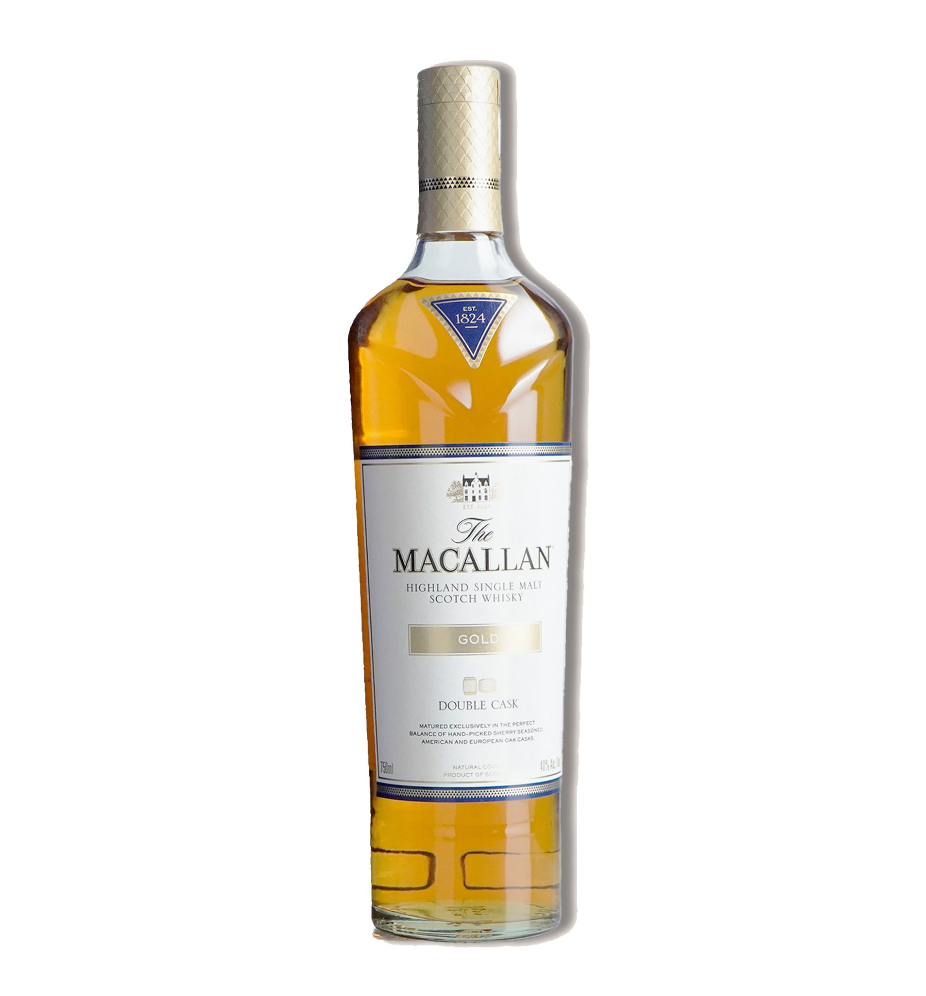 Macallan Gold Double Cask Single Malt is a refined expression that celebrates balance, heritage, and the signature elegance of the Macallan name. Formerly known as The Macallan Gold from the acclaimed 1824 Series, this release continues the same liquid legacy with a refreshed identity and contemporary presentation. It is defined by the harmonious union of American and European oak casks seasoned with Oloroso sherry, bringing together two distinct influences into one cohesive profile. The result is a naturally burnished gold color and a character that begins with the gentle sweetness associated with American oak before transitioning into the classic depth and richness long associated with Macallan, offering a polished and approachable style that remains unmistakably refined.