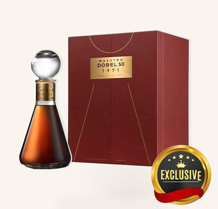Maestro Dobel 50 Anniversary 1971 is a tribute to five decades of craftsmanship, innovation, and celebration. This luxurious Extra Añejo tequila is the inaugural release in the Dobel 50 Anniversary Series, blending tradition with artistry. Aged to perfection in French and Eastern European oak barrels before finishing in rare Shochu barrels from Japan, this tequila is crafted from 100% blue Weber agave grown on a single estate in Tequila's lowlands. Through meticulous production—slow cooking, double distillation, and an artisanal refinement process—this tequila achieves an unparalleled level of smoothness, complexity, and elegance, perfect for marking life's milestones.