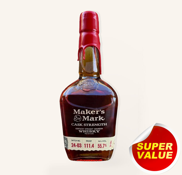 Maker's Mark Cask Strength Batch 24-03 (111.4 proof) is a bold expression of the iconic Kentucky bourbon, offering enthusiasts an uncut, unfiltered taste of the distillery's signature wheated mash bill. Founded in 1953 by Bill Samuels Sr. in Loretto, Kentucky, Maker's Mark has long been celebrated for its smooth, approachable bourbon, distinguished by its red winter wheat recipe and hand-dipped red wax seal. The Cask Strength series, introduced in 2014, allows aficionados to experience the bourbon straight from the barrel, capturing the essence of Maker's Mark in its purest form.
