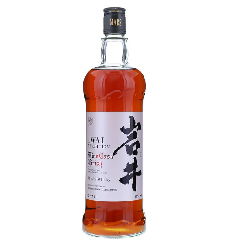 Iwai Tradition is a limited-edition blended Japanese whisky from Mars Shinshu in Nagano, Japan, featuring a unique mix of 70% malted barley and 30% corn. This special release is predominantly aged in ex-bourbon and ex-sherry casks, though other cask types such as ex-wine, port, and new oak may be included, varying with each batch. For this year's edition, the whisky undergoes a finishing period in ex-Pinot Noir and Cabernet casks from Mars Winery in Yamanashi, imparting distinctive aromas of toasted oats, strawberries, and sweet cream.