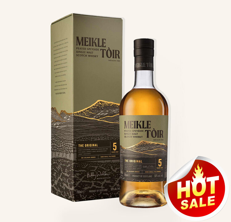 Experience the spirit of Speyside like never before with *Meikle Toir 5 Year Old The Original*. Crafted with a unique approach to peat, this exceptional single malt redefines tradition. Using mainland peat from St. Fergus, it delivers a distinctive, sweeter profile compared to coastal peated whiskies. The nose reveals a symphony of baking spices, burnt honey, and espresso, balanced by notes of hazelnuts, smoked almonds, and butterscotch. On the palate, the whisky unveils layers of sweet peat, rich chocolate, and heather honey, interwoven with the warmth of cinnamon, ginger, and oak-smoked sugar—a truly harmonious medley of flavors.