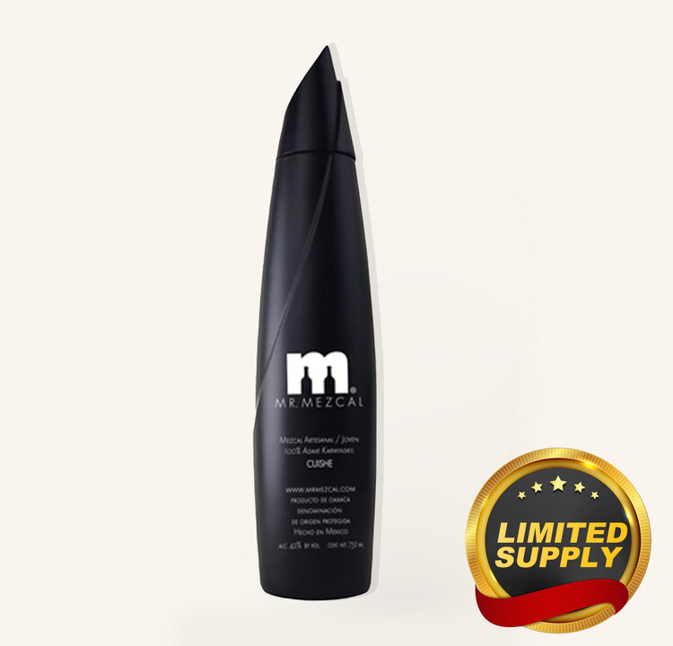 Mr. Mezcal Cuishe is a mono‑varietal, single‑estate spirit crafted from wild Agave karwinskii—commonly called “Cuishe” in Zapotec—and accounts for less than 1% of Oaxaca's agave crop. These impressive 12–18‑year‑old agaves stand 6–8 ft tall before being harvested by hand. Over three generations of family mezcaleros, each step—from roasting piñas in underground pits to tahona milling, open‑air fermentation, and copper still distillation—is executed entirely by hand, honoring artisanal tradition and ecological respect. Its striking black‑on‑black bottle design reflects Mr. Mezcal’s dedication to both purity and aesthetics, earning international acclaim (Platinum, Gold, “Best Mezcal” at LA Spirits; Silver at San Francisco World Spirits).