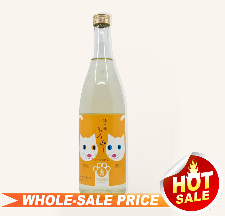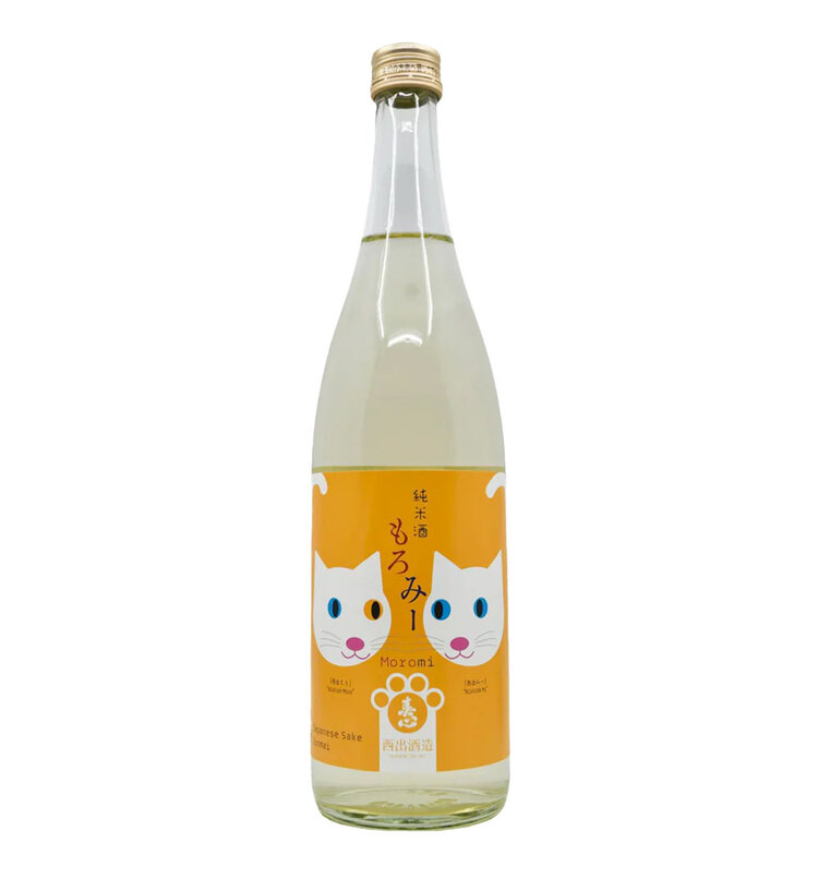 Nishide Moromi Junmai is a delightful sake featuring an adorable label inspired by Nishide Shuzo’s twin white cats, “Moro” and “Mi.” This sake is perfect for those who enjoy a sweeter profile, offering a harmonious blend of mild acidity and natural umami. When served chilled, it delivers a crisp, refreshing flavor reminiscent of white wine, while gently warming it enhances its aromatic complexity, creating a cozy and comforting drinking experience.