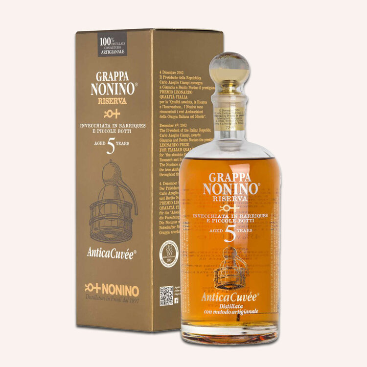 Discover the exceptional taste of the Nonino family's masterful blend of grappas in this exquisite spirit. Crafted from fresh pomace, including the finest Merlot and Pinot Nero grapes, and aged for between 5 and 20 years in carefully selected barriques and small casks, this blend is a true masterpiece of the grappa-making craft.