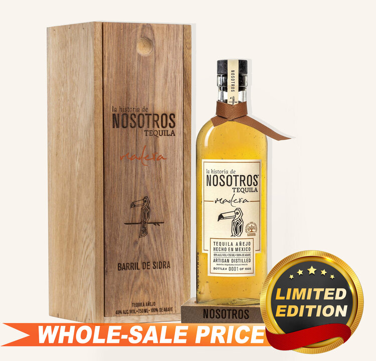 This limited edition Tequila Añejo, a collaboration with 2 Towns Ciderhouse, is crafted for whiskey enthusiasts, with only 1,500 bottles available, each individually numbered. As the second release in the Nosotros Madera collection, this Tequila is aged for 20 months in wet cider barrels previously used for 2 Towns Ciderhouse's 'Bad Apple' batch and Woodford Reserve Bourbon. The result is a distinctive flavor profile combining cooked agave with warm apple notes, accented by spicy sandalwood and nutty almond aromas. Presented in a handmade wooden box, it's a must-have for collectors.