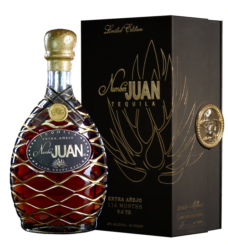 Number Juan In A Million Tequila is a truly rare and luxurious Extra Añejo, limited to only 3,000 bottles worldwide. This exceptional tequila has been aged for 116 months (9.6 years) in retired white oak American bourbon barrels, capturing nearly a decade of patience, craftsmanship, and tradition. Born from an 8-year-old agave field in Jalisco and distilled with pure volcanic spring water, this tequila is a testament to the love and dedication of founders Alex and Ron, who envisioned something extraordinary for tequila enthusiasts. The result is a smooth, bold, and sophisticated spirit that epitomizes luxury.