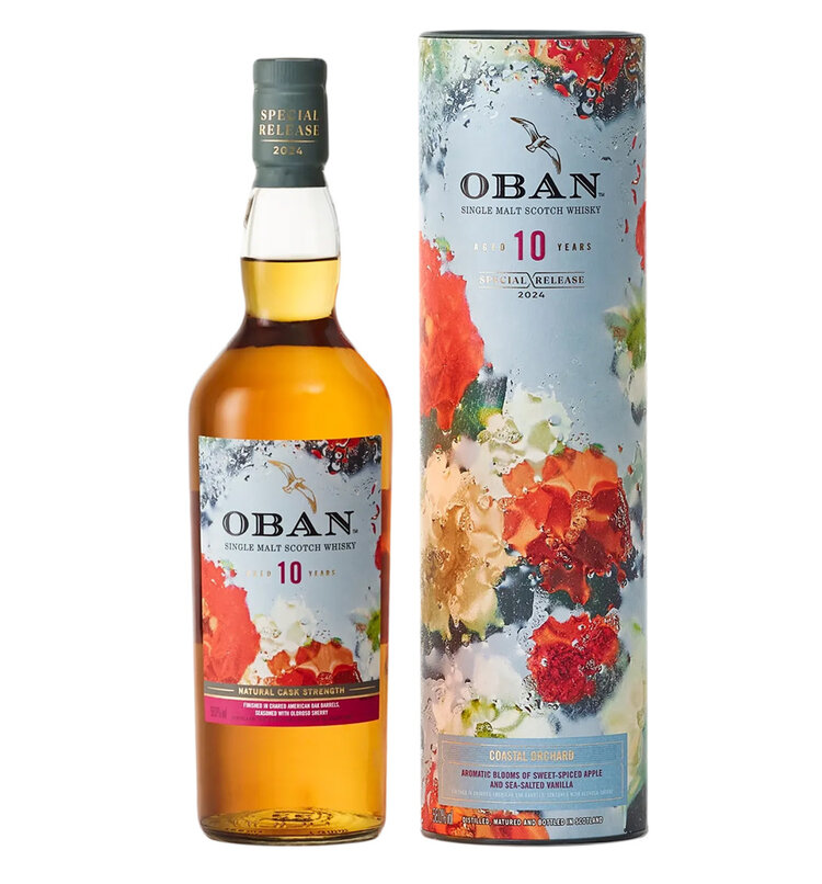 The Oban Natural Cask Strength Special Release 2024 10-Year-Old Single Malt Scotch Whisky is a masterful expression of tradition and innovation. This limited-edition whisky is aged for a decade, beginning its journey in refill casks before a selective finish in newly charred American Oak barrels, freshly seasoned with Oloroso sherry. This careful maturation imparts a symphony of flavors, from baked apple and sea-salted vanilla to subtle notes of nutmeg, cinnamon, and clove, all heightened by the charred oak's influence. With a proof of 116, this single malt showcases Oban's maritime heritage, offering a nose that vividly evokes fresh sea air, crystal salt, and edible seaweed, seamlessly transitioning into light oak, vanilla, and the fruity essence of a Sicilian lemon grove.