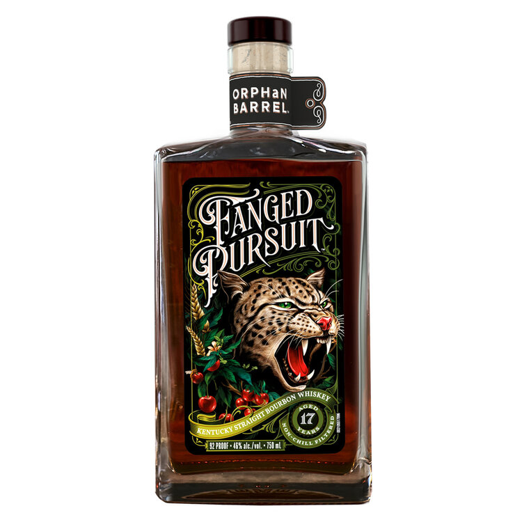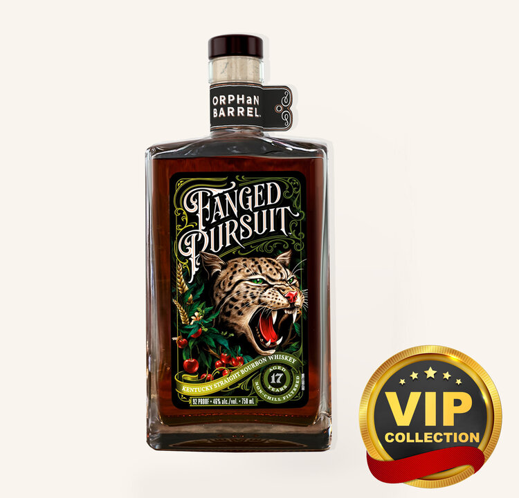 Orphan Barrel Fanged Pursuit 17 Year Straight Bourbon is a singular tribute to the wild spirit of Kentucky’s Bourbon Heartland. Influenced by the elusive bobcat that prowls the edges of Bluegrass State distilleries, this rare release emerges only after seventeen years of patient, undisturbed maturation in charred American oak barrels. Like the watchful predator itself, the whiskey’s development is deliberate and precise, every year in the rickhouse deepening its connection to the surrounding landscape. Fanged Pursuit is a once-in-a-lifetime expression, crafted in a single release and destined never to be replicated—a fleeting glimpse of bourbon’s most untamed character, caught only in this moment.
