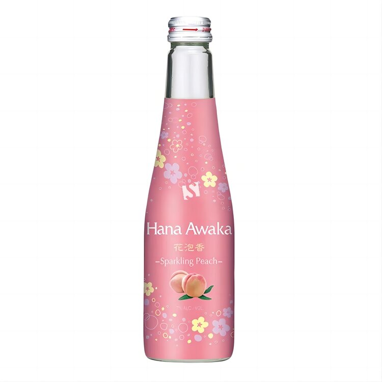 Hana Awaka Sparkling Sake is characterized by its light, fizzy nature and mild sweetness balanced with refreshing acidity. With an alcohol content of approximately 7%, it provides an easy-drinking option for various occasions. The series includes original, peach, yuzu, and berry flavors, each crafted to deliver a unique tasting experience while maintaining the brand's signature effervescence.