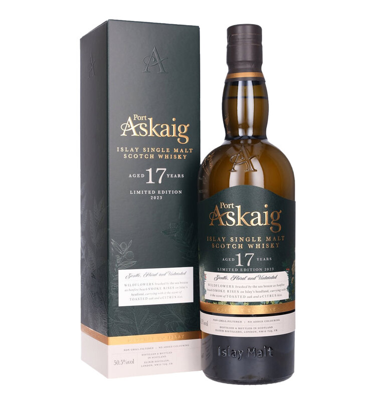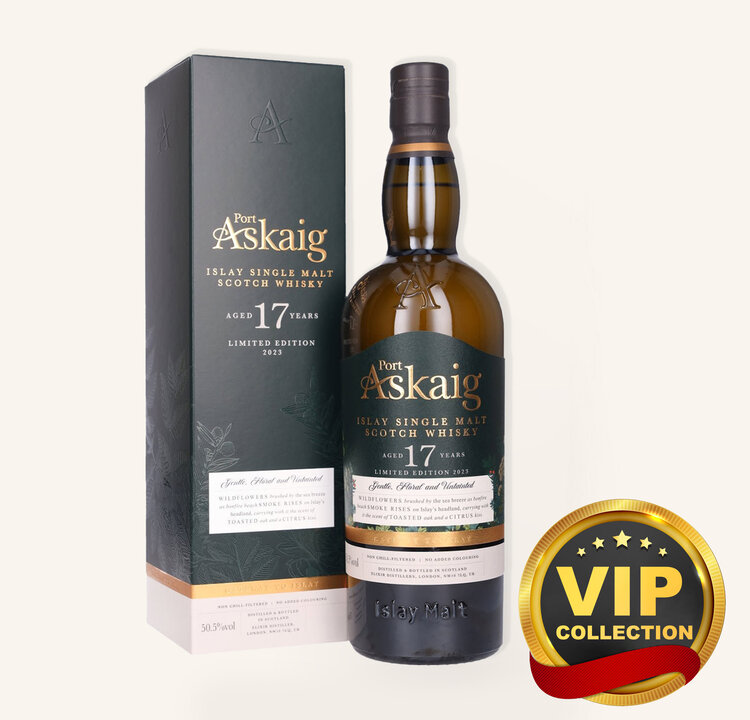 Port Askaig 17-Year-Old Islay Single Malt Scotch Whisky is a distinguished expression that embodies the essence of Islay's renowned whisky heritage. Port Askaig, a small village on the northeast coast of Islay, serves as the gateway to this iconic whisky-producing region. The brand, named after this village, is celebrated for sourcing exceptional single malts that capture the unique character of Islay. This 17-year-old release is meticulously matured in traditional American oak casks, carefully selected for their quality and age. Bottled at 50.5% ABV without chill filtration or added coloring, it offers an authentic and unadulterated whisky experience. Approximately 9,000 bottles are made available annually, underscoring its limited-edition appeal.
