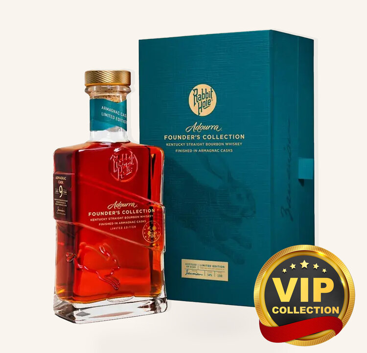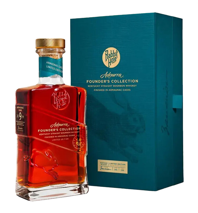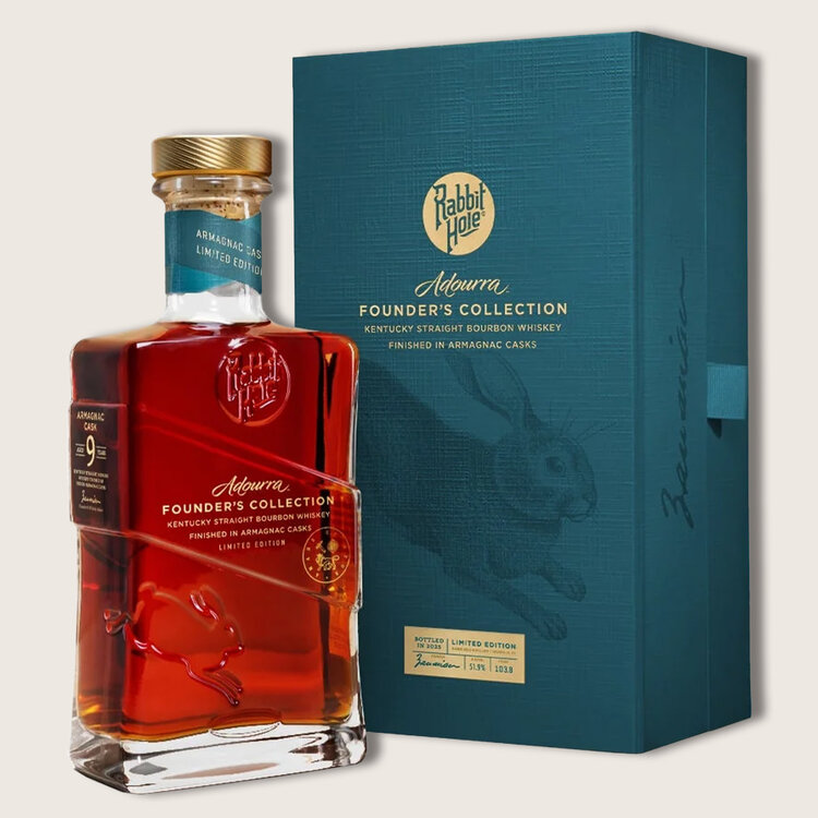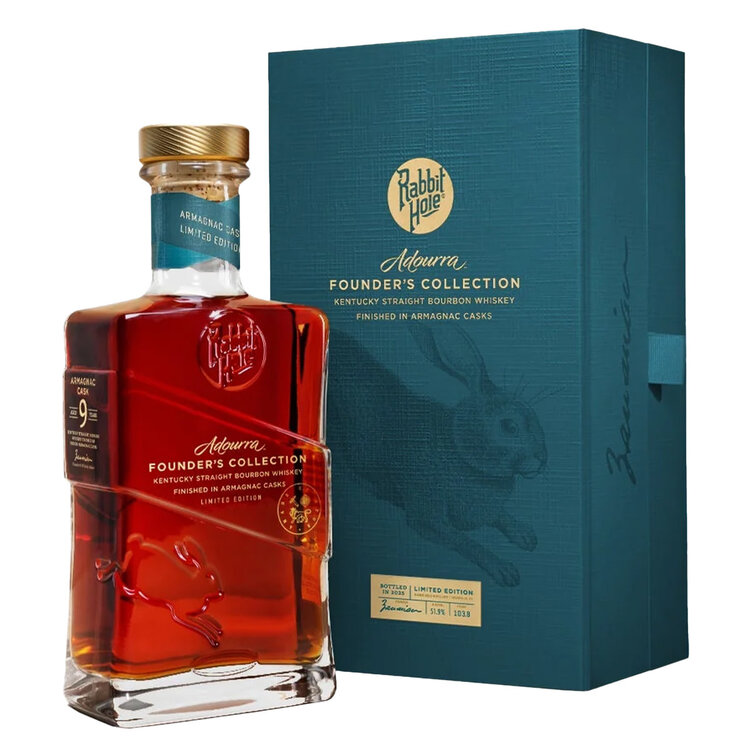 Rabbit Hole Founder’s Collection Adourra 9-Year-Old Kentucky Straight Bourbon is a masterful expression of innovation and tradition from Rabbit Hole Distillery in Louisville, Kentucky. Founded in 2012 by Kaveh Zamanian, a former psychologist inspired by his passion for bourbon, Rabbit Hole has consistently pushed the boundaries of American whiskey-making. Crafted from a mash bill of 78% corn, 13% rye, and 9% barley, the bourbon is aged for nine years before being finished in French Armagnac casks sourced from a traditional solera system, where brandies have matured for over 30 years. This finishing process imparts a luxurious complexity, marrying the rich heritage of Kentucky bourbon with the nuanced elegance of French brandy.