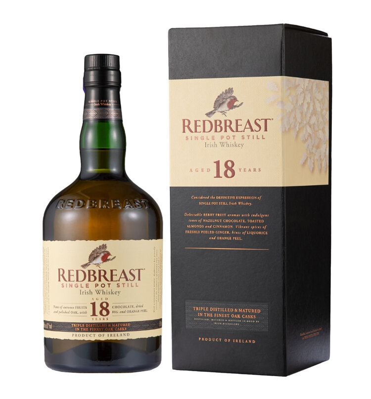 On the nose, Redbreast 18 offers a complex bouquet of ripe blackcurrants, raspberries, sugar-glazed cherries, and dried figs, complemented by indulgent tones of hazelnut chocolate and caramelized stone fruits. The palate is full-bodied and rounded, with oak tannins enhancing the decadent sweetness of sun-kissed grapes and autumnal fruits. Vibrant spices of freshly peeled ginger and hints of liquorice weave amongst the wine-seasoned oak influences of dried fruits, dark berries, and orange peel. The finish is rich and lasting, with pot still spices, fruit, and oak fading harmoniously. This whiskey pairs exceptionally well with roasted meats, aged cheeses, and desserts like dark chocolate cake or pecan pie.