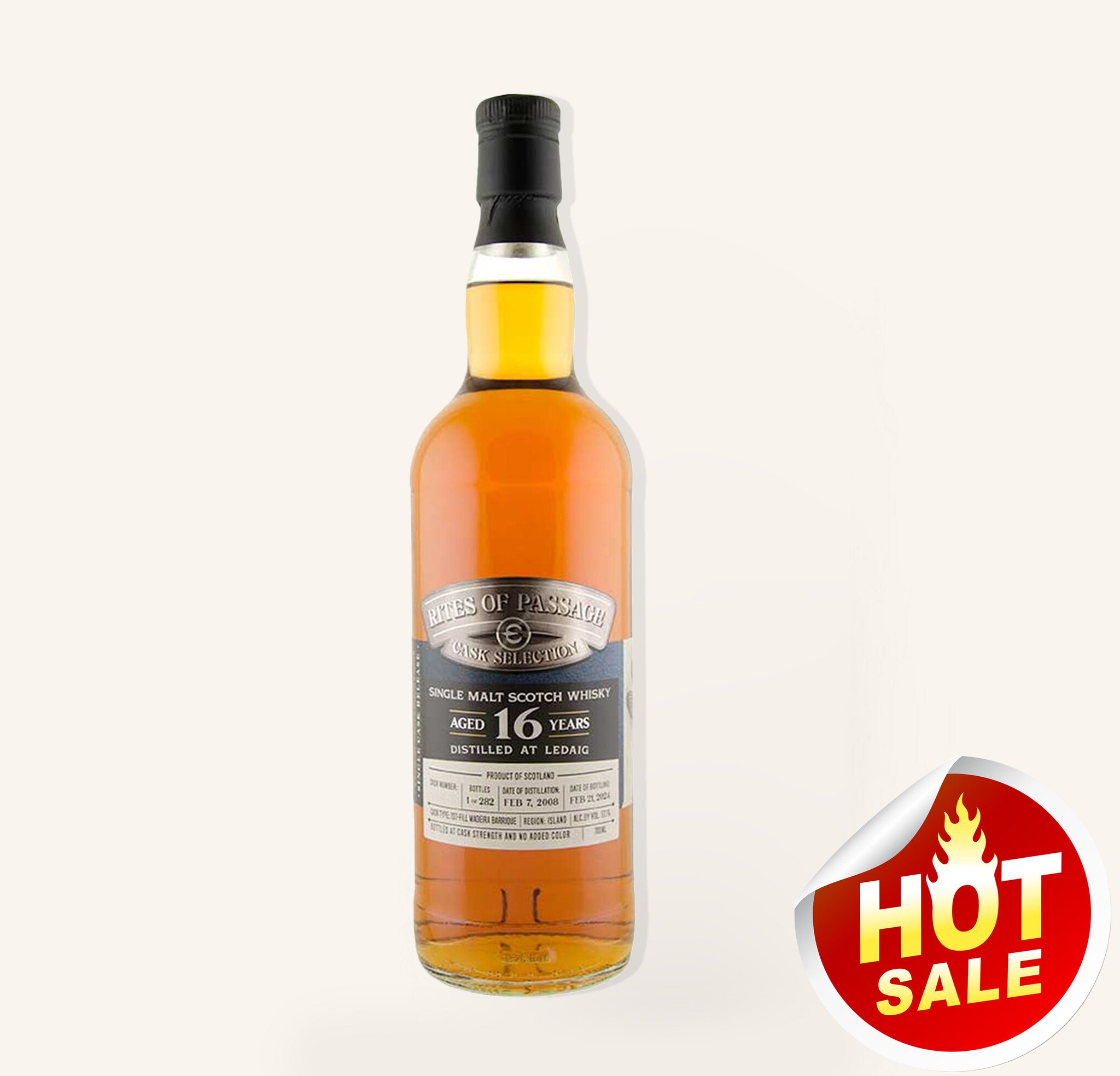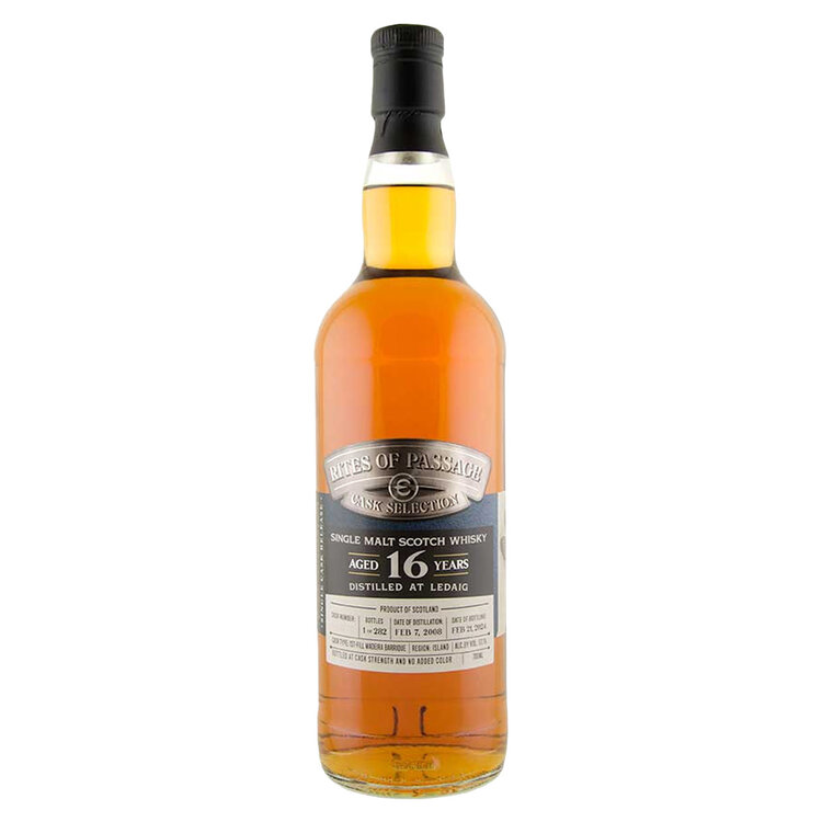 Rites Of Passage Ledaig 16-Year is a remarkable expression from Epicurean Selection, part of the prestigious Rites of Passage Cask Selection Series. Distilled at Tobermory Distillery, the only operational distillery on the Hebridean island of Mull and one of the oldest in Scotland, this release showcases over 16 years of careful maturation. Originally distilled in 2008 and re-racked in a first-fill Madeira barrique in 2018, it captures the unique character of the island while highlighting the artistry of independent cask selection. Bottled at full cask strength with no added coloring and non-chill filtered, this limited edition—just 282 bottles—offers an unadulterated, powerful, and authentic experience that reflects both heritage and precision.