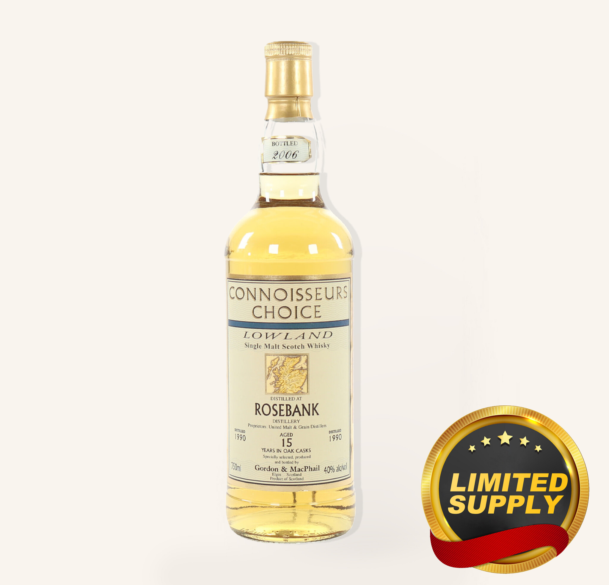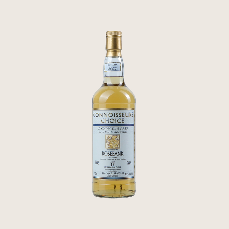 Rosebank 15-Year 1990 Connoisseurs Choice by Gordon & Macphail is a carefully selected expression that exemplifies the art of single cask selection and long-term maturation. Part of the Connoisseurs Choice range, this release highlights Gordon & Macphail’s commitment to capturing the unique character of each cask. Matured for fifteen years, it combines first-fill and refill oak influences to develop depth, balance, and subtle complexity, allowing the natural elegance of Rosebank’s Lowland profile to shine. Bottled non-chill-filtered and without coloring, this expression preserves the full richness, clarity, and refined structure that define its heritage, offering an authentic and sophisticated tasting experience for enthusiasts.