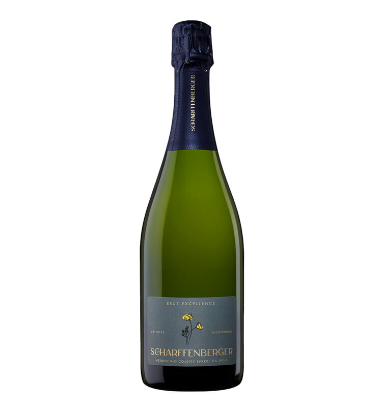 Scharffenberger Brut Excellence is an exquisite sparkling wine crafted using the traditional méthode champenoise, where each bottle undergoes individual fermentation. This exceptional wine is a blend of two-thirds Pinot Noir and one-third Chardonnay, sourced from the winery's own 120-acre vineyards in Anderson Valley, as well as select vineyards in Mendocino County. The Pinot Noir contributes vibrant red fruit aromas, such as cherry and plum, while the Chardonnay adds tropical notes of lychee and mango. Undergoing 100% malolactic fermentation, the wine achieves a creamy, round texture with subtle hints of vanilla.