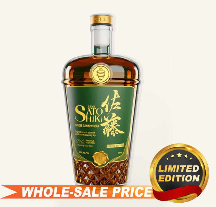 Discover the unparalleled luxury of Sekk Sato Shiki 41-Year-Old Single Grain Whisky, an exclusive and limited edition masterpiece that captures the essence of Japanese craftsmanship. This rare whisky is meticulously crafted from a select reserve using the innovative Sato Still, which seamlessly merges traditional techniques with modern distillation. Aged for over four decades in white oak, Limousin oak, and sherry barrels, this whisky embodies the heart of Japan, celebrating its rich history, dedication, and artistry. Each sip is a tribute to the past and a nod to the future—Kanpai!