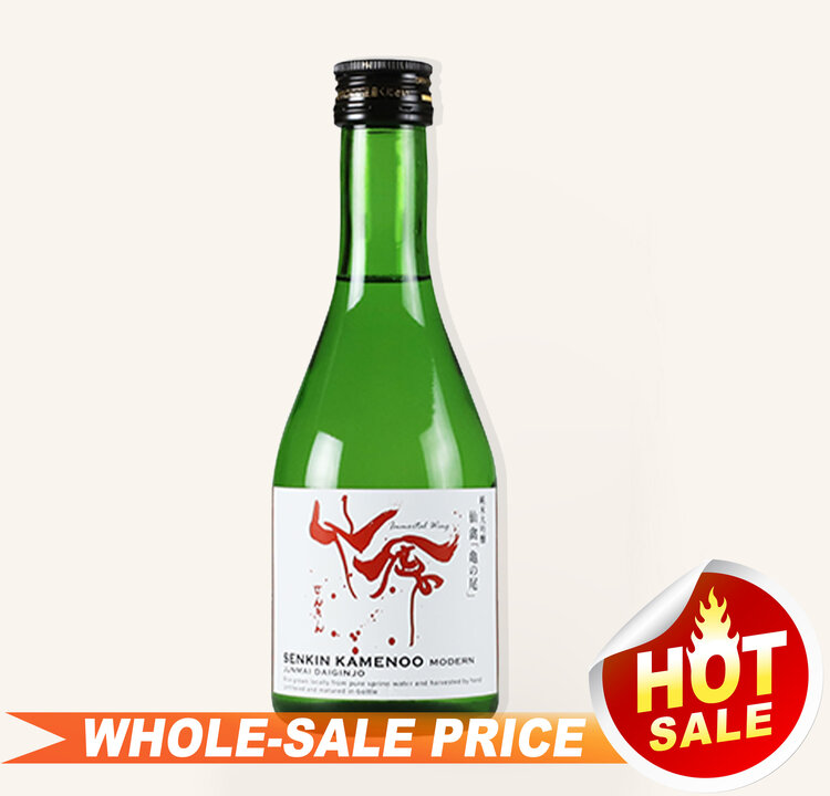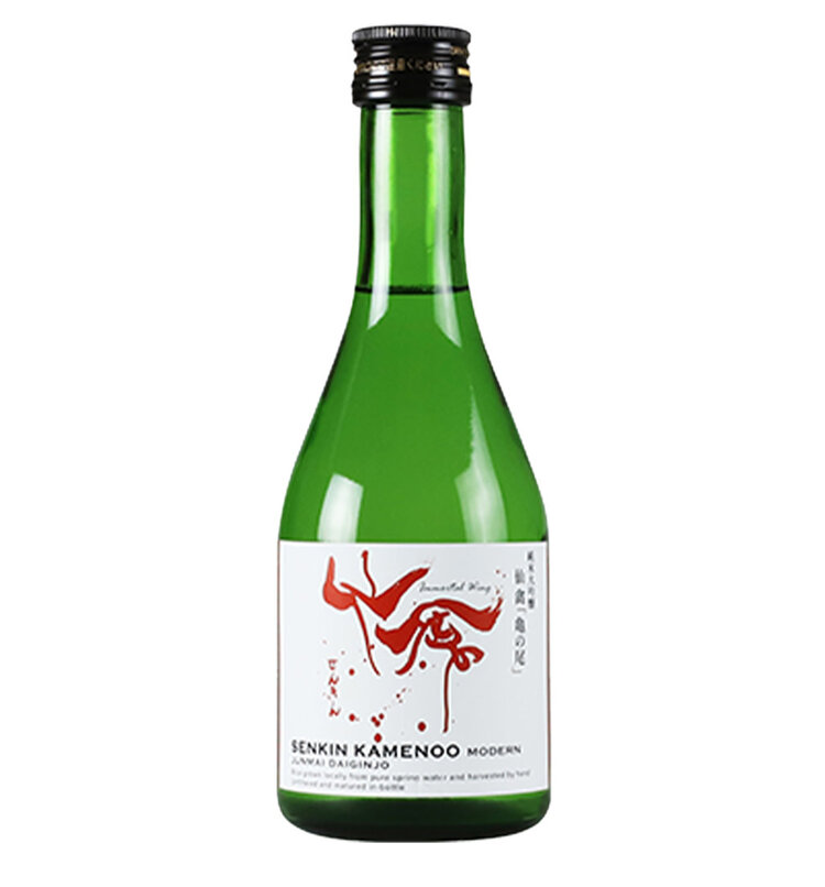 In the autumn, delicate golden stalks growing in hand-cultivated paddies ripple with the movement of the head-heavy treasure. These fields are filled with Kame No O, a finicky plant, and one of the few pure strains of sake rice left in Japan (most varieties are a result of crossbreeding). Brewed with this revered sake rice varietal, Senkin Modern Kame No O - a member of their "modern" series that is made using modern sake brewing methods - is a sake that somehow delicately displays the wildest features of this rice alongside its characteristic savory aftertaste. The brew is bright, elegant and aromatic with a deep and dense peach-like character, silky mouthfeel, and a refreshing brightness. The brewery encourages drinkers to sip their sake out of Bordeaux wine glasses to truly appreciate the sensory potential of this brew.