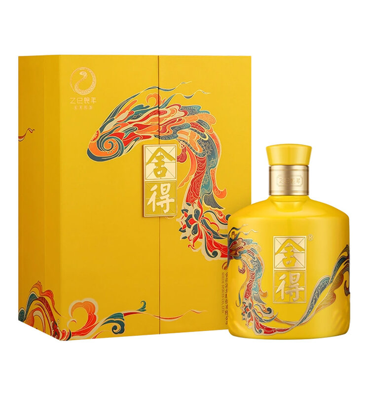舍得“灵蛇新生”乙巳蛇年生肖酒以“木生万物”为设计灵感,寓意生长与新生。酒体甄选6年以上基酒与15年以上调味酒,由非遗传承大师特调,承袭1300余年《太禾曲经》古法技艺,成就54度的典型老酒风格,兼具艺术与收藏价值。瓶身以帝王黄为主色调,融合青、橙、红等五行之色,演绎木之生机与祥瑞,传递对幸福、繁荣与生机的美好祝愿。