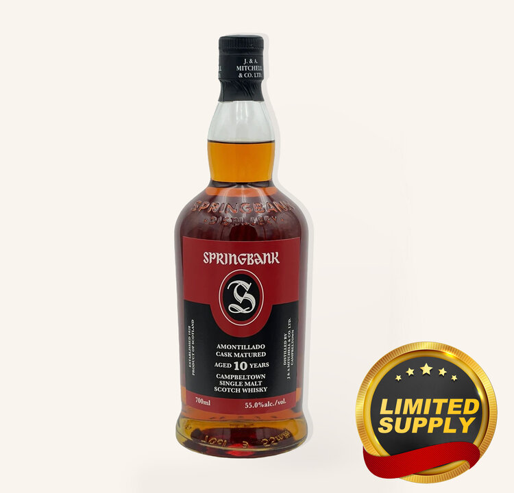 Springbank Amontillado Cask Matured 10 Year Old Single Malt is the third release in the acclaimed Springbank Sherry series, showcasing the distillery's meticulous craftsmanship and dedication to tradition. This exceptional whisky spends its first five years maturing in Bourbon casks, followed by another five years in Amontillado sherry casks, creating a beautifully layered and complex profile. On the nose, earthy mustiness intertwines with inviting notes of hazelnut, maraschino cherries, and blood orange. The palate reveals a striking balance of savory cured meats, gorse, and tobacco box, softened by sweet hints of coconut and treacle. The experience culminates in a dry, lingering finish with subtle notes of wood shavings and tarragon.