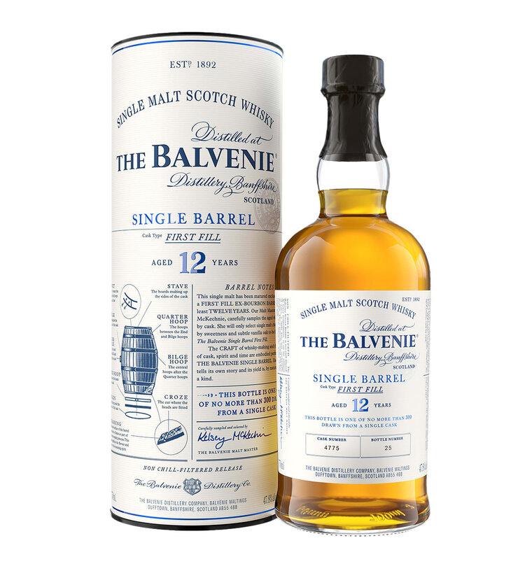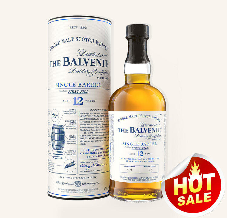 On the palate, The Balvenie 12-Year Single Barrel delivers a luscious mouthfeel with rich flavors of vanilla, creamy toffee, and gentle oak spice. A touch of ripe orchard fruits, such as pear and apple, brings brightness, while undertones of cinnamon and nutmeg add warmth. The finish is long and lingering, with a refined sweetness that fades into whispers of oak and dried fruit. This whisky pairs beautifully with a variety of foods, making it a versatile choice for both casual and refined pairings. Enjoy it alongside aged cheeses like Gruyère or Comté, where the whisky’s honeyed sweetness enhances the nutty, savory notes of the cheese. For a heartier pairing, try it with seared scallops or roasted pork, where the whisky’s vanilla and spice elements elevate the dish’s caramelized richness. Whether savored neat or with a splash of water, The Balvenie 12-Year Single Barrel is a captivating single malt that showcases the elegance of individually selected casks.