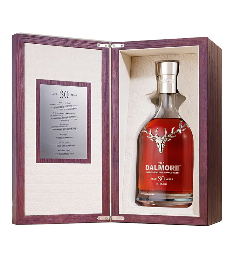 On the nose, The Dalmore 30 offers an enticing blend of manuka honey, dark berry fruits, marzipan, and cinnamon. The palate is a symphony of flavors, including Victoria plums, dark cacao, Maraschino cherries, and subtle hints of Colombian coffee. The finish is long and memorable, with notes of blood orange, moist ginger cake, liquorice, and sugared almonds, creating a refined and sophisticated whisky experience.