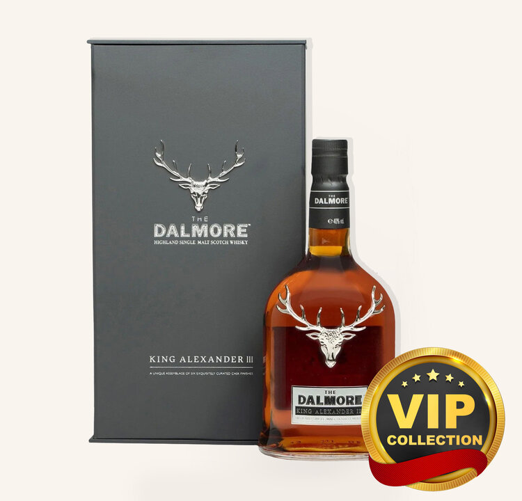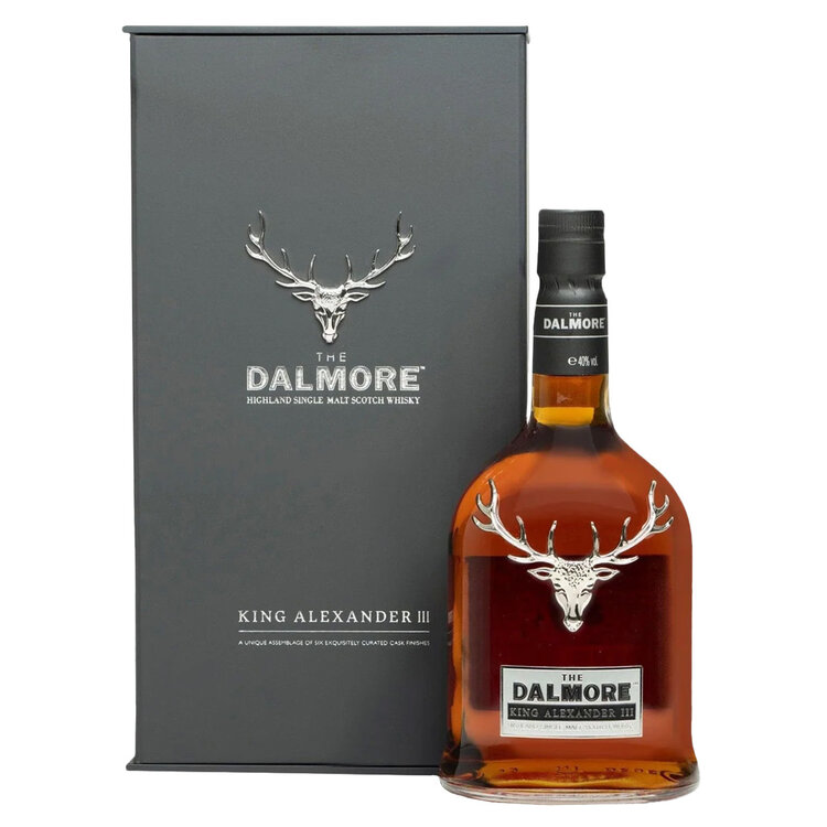 The Dalmore King Alexander III is a crowning jewel in The Dalmore’s Principal Collection, named in homage to a heroic deed in 1263 when a member of Clan MacKenzie saved King Alexander III from a charging stag—symbolised forever by the brand’s iconic 12‑point stag crest. Crafted using The Dalmore’s signature philosophy of multi‑cask maturation, this expression is a harmonious marriage of six carefully selected finishes: small‑batch bourbon, Matusalem Oloroso sherry, Madeira, Marsala, port pipes, and Cabernet Sauvignon wine barriques. Bottled at 40% ABV in a striking 750 ml presentation, King Alexander III showcases the brand’s renowned craftsmanship, spearheaded by Master Distiller Richard Paterson, who describes it as “a spectacular showcase of our philosophy of multi‑cask maturation.”