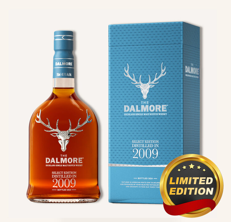 The Dalmore Select Edition 2009 is part of the esteemed Vintages Collection, a series of annual releases that showcase the unique character of a specific year at The Dalmore distillery. This single malt is matured in American white oak ex-bourbon barrels, then further enhanced in hand-selected Matusalem Sherry casks and Graham's 10-year-old Tawny Port pipes. Non-chill filtered and naturally colored, this whisky offers a pure and authentic expression of its aging process.