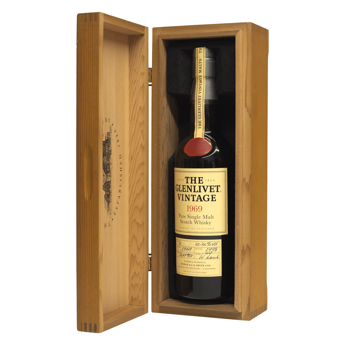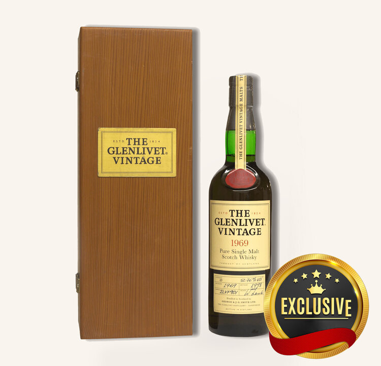 The Glenlivet Vintage 1969 (Bottled 1998) is an exceptionally rare Speyside release from The Glenlivet, one of Scotland’s most iconic names in single malt Scotch. Distilled in 1969 and left to mature undisturbed for nearly three decades, this extraordinary expression was carefully selected for the prestigious “Glenlivet Vintage” series and bottled in 1998. Representing a remarkable era in the distillery’s history, it reflects traditional craftsmanship, patience, and the refined house style that helped define Speyside character worldwide. As a long-aged and highly limited offering, The Glenlivet Vintage 1969 stands as a coveted collector’s piece and a testament to enduring quality and heritage.