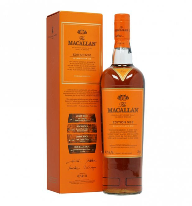 Macallan Edition No. 2 Highland Single Malt Scotch Whisky is the second release in an annual limited released series from the esteemed distillery. Edition No. 2 is a collaboration between the Macallan Master Whisky Maker, Bob Dalgarno, and the Roca brothers, whose restaurant El Celler de Can Roca has been named best restaurant in the world twice.