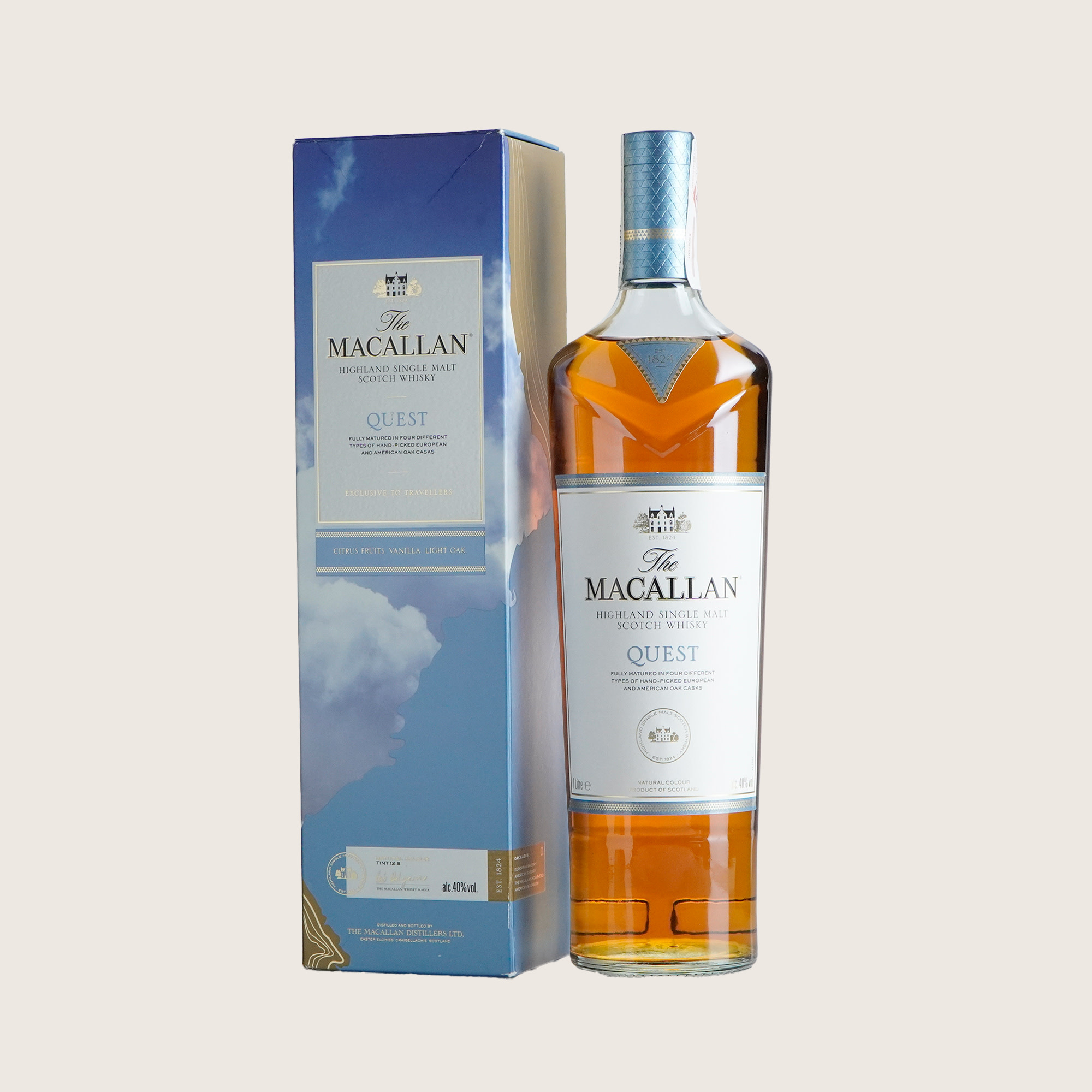 The Macallan Quest highland single malt 1L 40% Country: Scotland Contents: 1 liter Alcohol: 40% The Macallan Quest Highland single malt is one of four single malts from Macallan Quest Collection, produced by the Macallan Distillery in Scotland Highland. The single malt whiskey is made exclusively for Global Travel Retail, with a distinctive character through the journey he has traveled in search of the best oak, the maturation in both European and American oak barrels made.