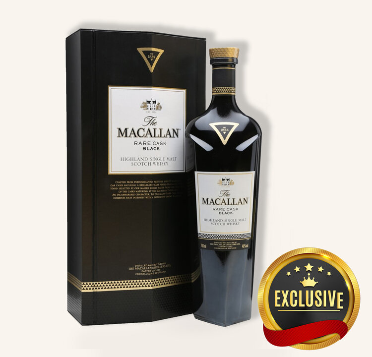 The Macallan Rare Cask Black is truly extraordinary unlike any other Macallan today. It is a Macallan with a surprisingly yet subtle distinctive smoky flavor. This unexpected flavor still delivers the full bodied richness of the spirit’s DNA from 100 percent sherry seasoned European and American oak casks, of which most are first fill. Intensity of flavor from a timeless thread of peat smoke, Rare Cask Black combines dried fruits, nutmeg, ginger and beautifully polished oak plus dates, figs and raisins, heavy but sweet. A dry smokiness reveals itself yielding to softer oak tones. The finish is long, fruity with an elegant wood smoke.