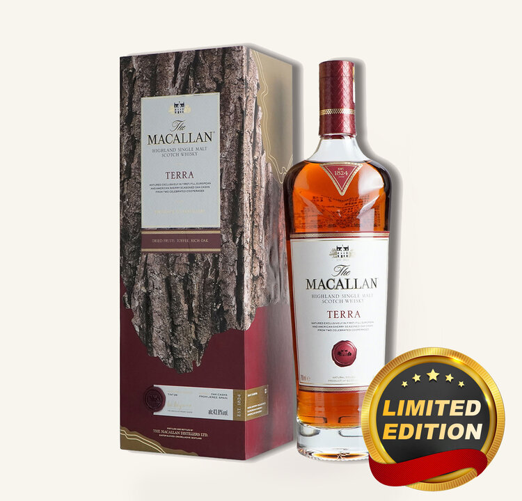 The Macallan Terra is a distinguished release from The Macallan, created as part of the celebrated Quest Collection that explores the journey of oak and flavor across continents. This expression symbolizes discovery and craftsmanship, drawing on carefully selected European and American oak casks that were seasoned with sherry and sourced from renowned family cooperages. The journey of these casks spans thousands of miles before arriving in Scotland, where they nurture the character and depth of the final creation. Terra highlights the remarkable influence of first-fill oak, showcasing the brand’s dedication to exceptional wood management and patient maturation. The result is a balanced and complex single malt with a rich natural color and a profile that reflects both tradition and exploration.